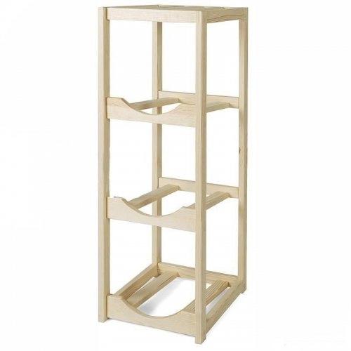 Підставка виконана з дерева в прямокутній формі, висока. Можна розмістити 3 бутлі стандартного 18,9 л розміру і зверху полки поставити диспенсер з водою або бутель з помпою