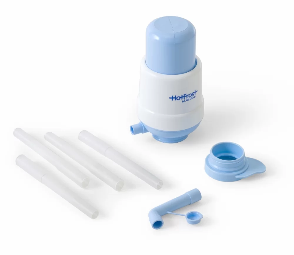 Надевается прямо на бутыль. Не требует электропитания. Подача воды осуществляется за счёт создания насосом помпы избыточного давления воздуха в бутыли. Воду дает порционно - при каждом нажатии на кнопку насоса.